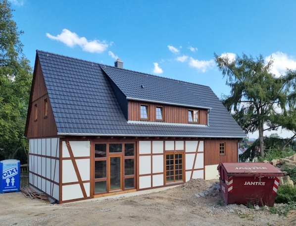 Bauphase - Ersatzneubau Scheune als EFH mit Zwischengeschoss straßenseitig schlicht - Bauort Wehlen